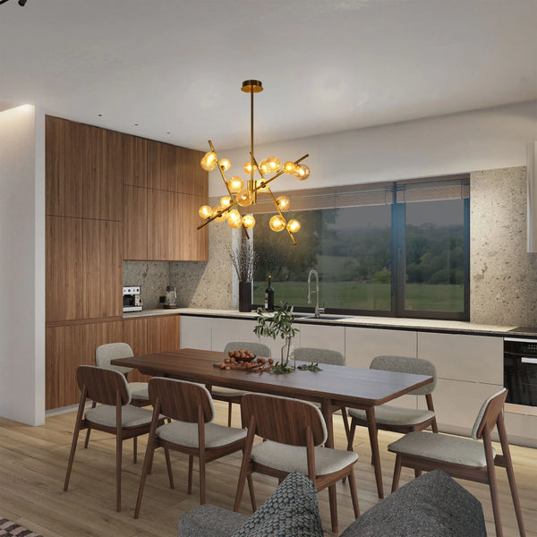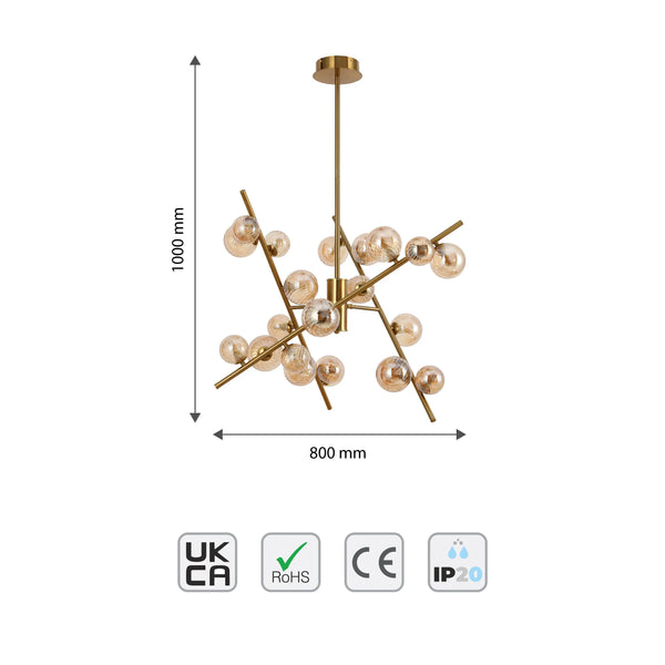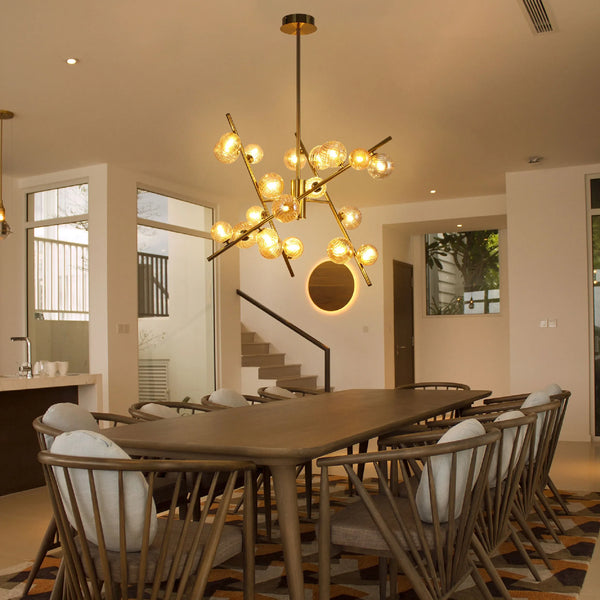 Dimmable 24-Light Bronze Globe Chandelier with Amber Glass Diffuser Make a statement with this captivating 24-light bronze globe chandelier. Its abstract, multi-arm design adds a...